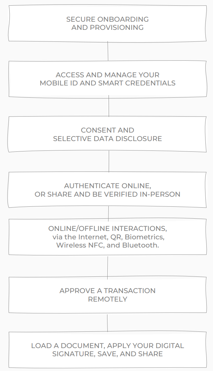 Furthermore, our users have exclusive control to activate or deactivate their credentials, selective data disclosure, access to protected local data, and secure remote data retrieval.